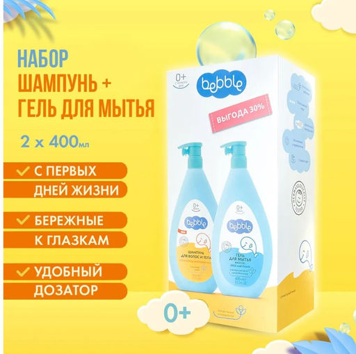 Промо-набор Bebble 0+ Шампунь для волос и тела c ромашкой и липой, 400 мл/Гель для мытья, 400 мл Bebble