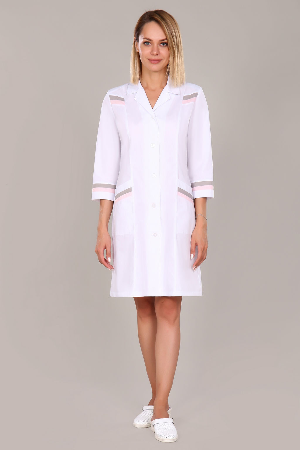 Халат женский 85 ТС. Цвет: белый и серый и персиковый