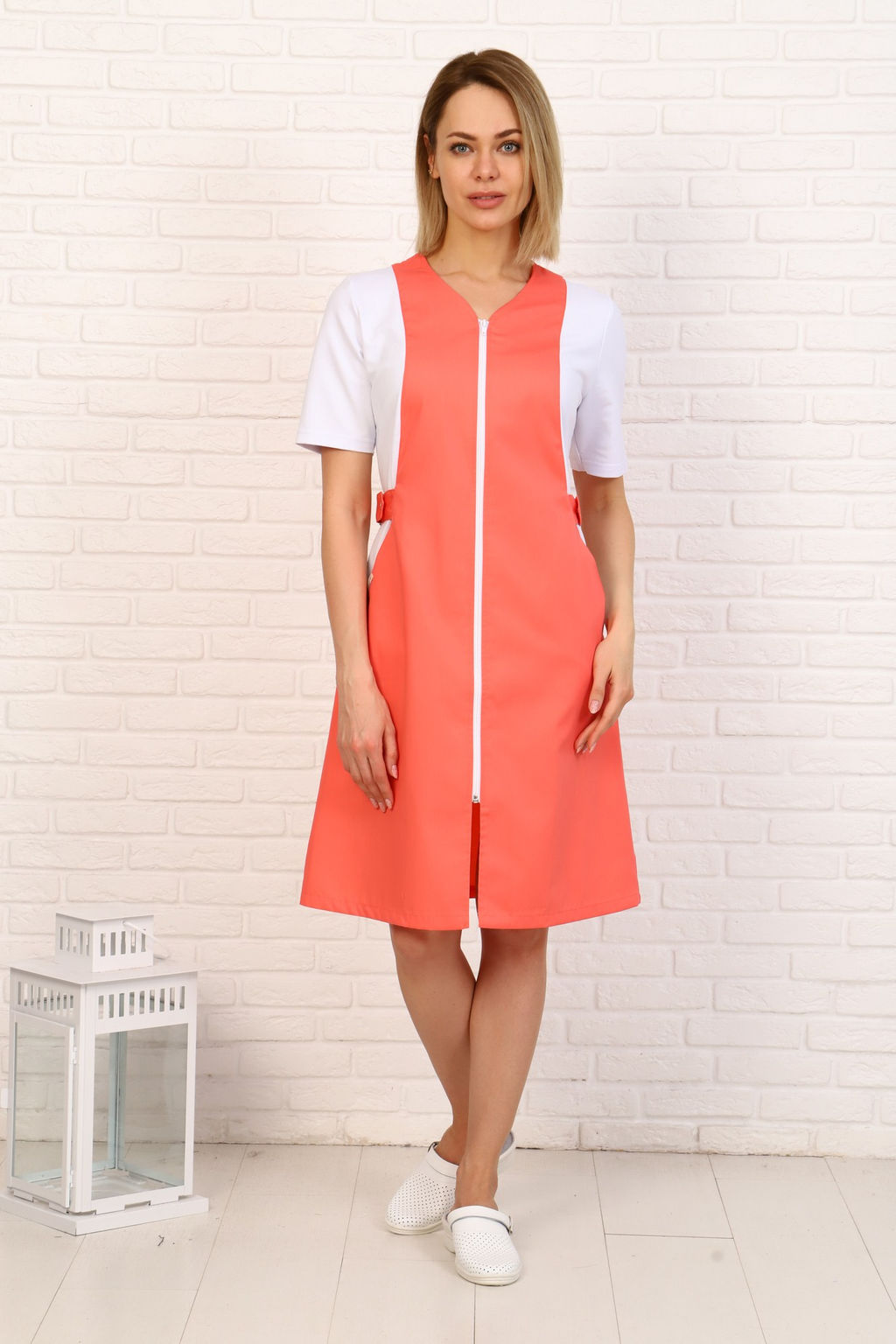 Халат женский 127 CVC/трикотаж. Цвет: белый и коралловый