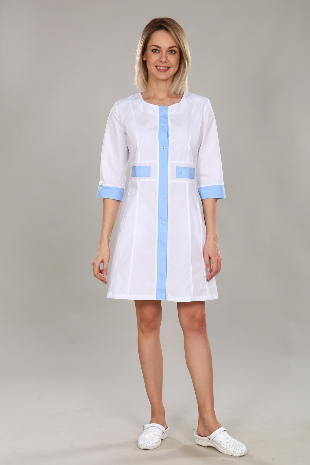 Халат женский 163 ТС. Цвет: белый и холодный голубой