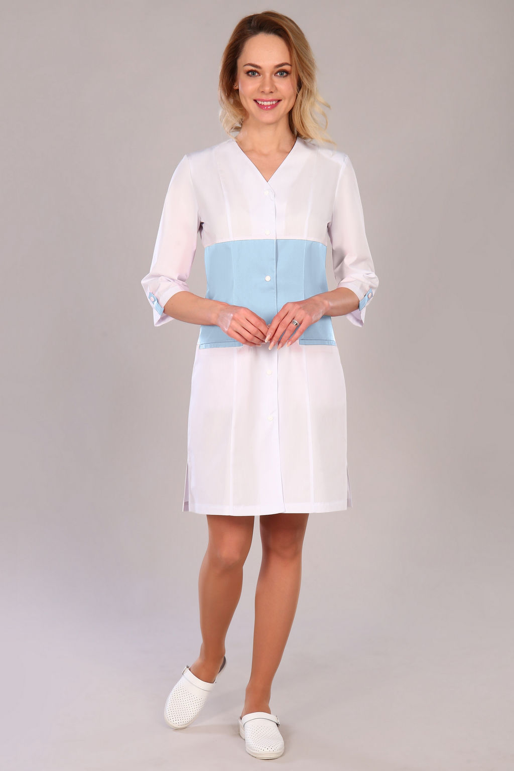 Халат женский 151 CVC. Цвет: белый и холодный голубой