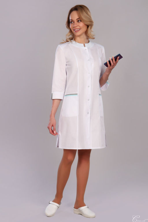 Халат женский 129 TC. Цвет: белый и светло-бирюзовый