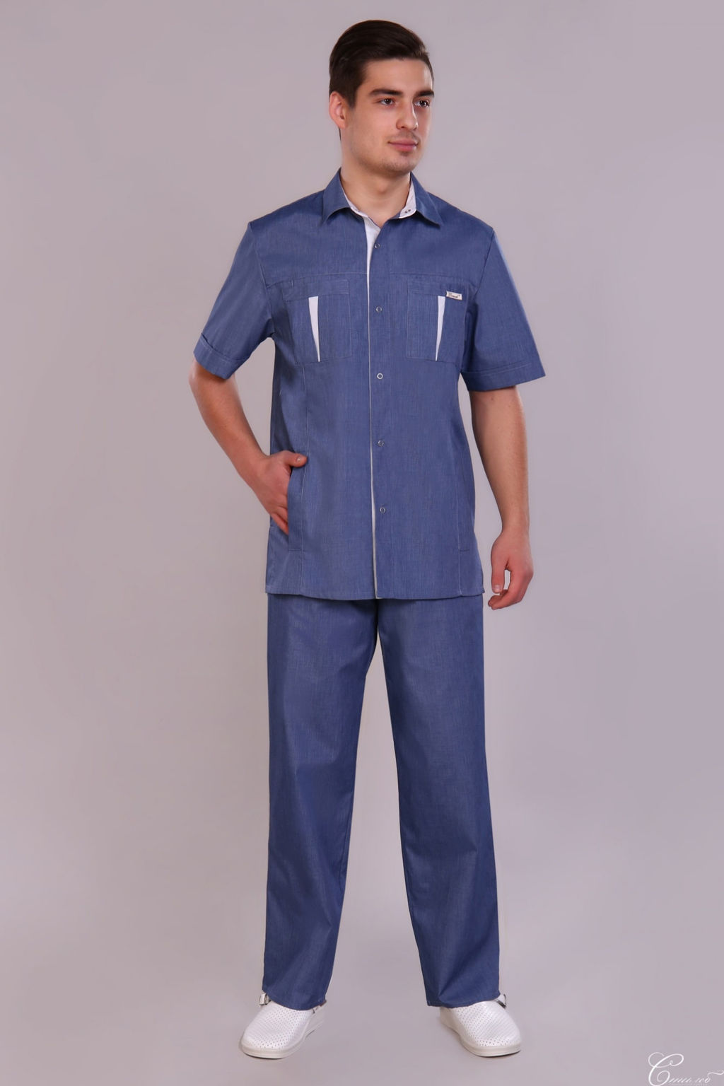Костюм мужской 233 ТС. Цвет: джинс и белый