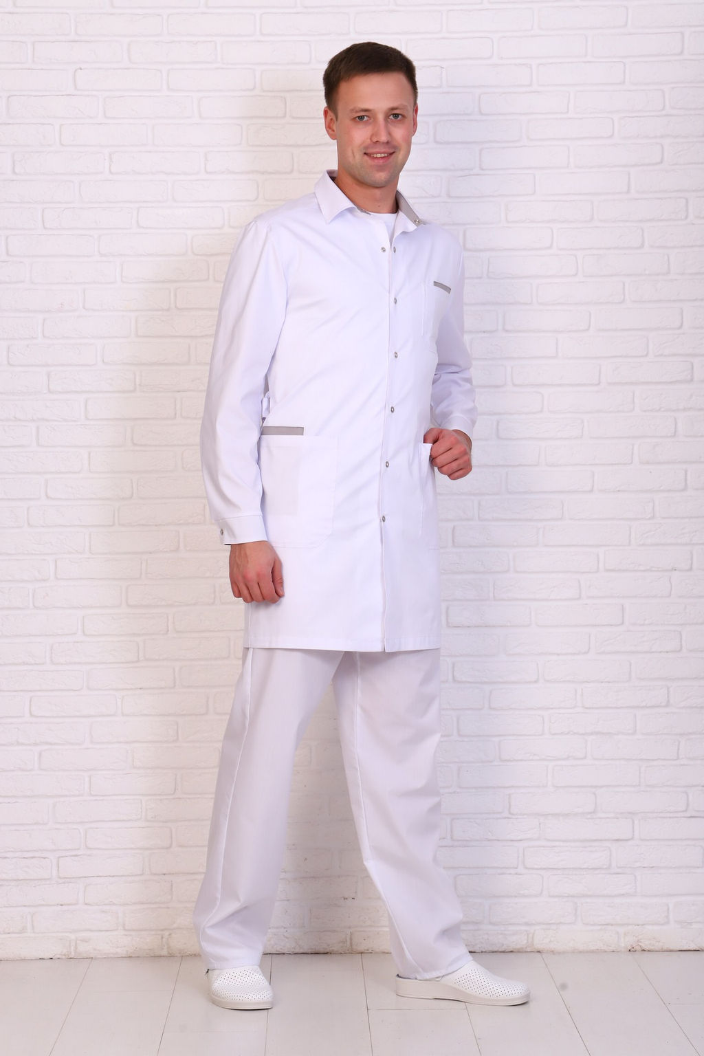Халат мужской 236 CVC. Цвет: белый и серый