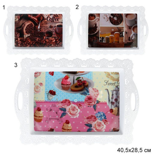 Поднос прямоугольный 40,5х28,5 см / 9687 /уп 120/с ручками