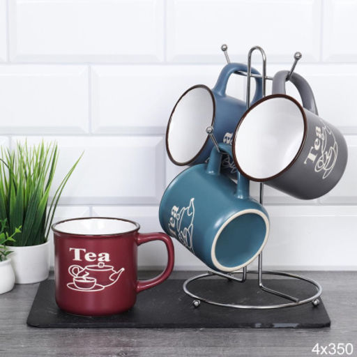 Кружки 4 штуки на металлическом стенде 350 мл / 20974-4/
