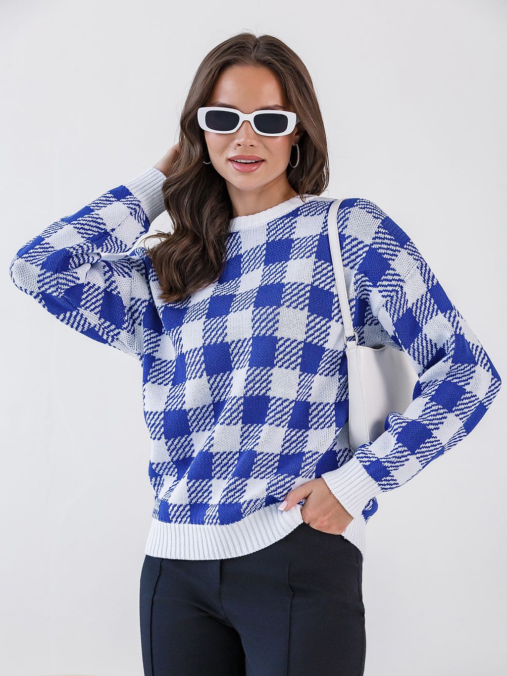 Джемпер вязаный в клетку