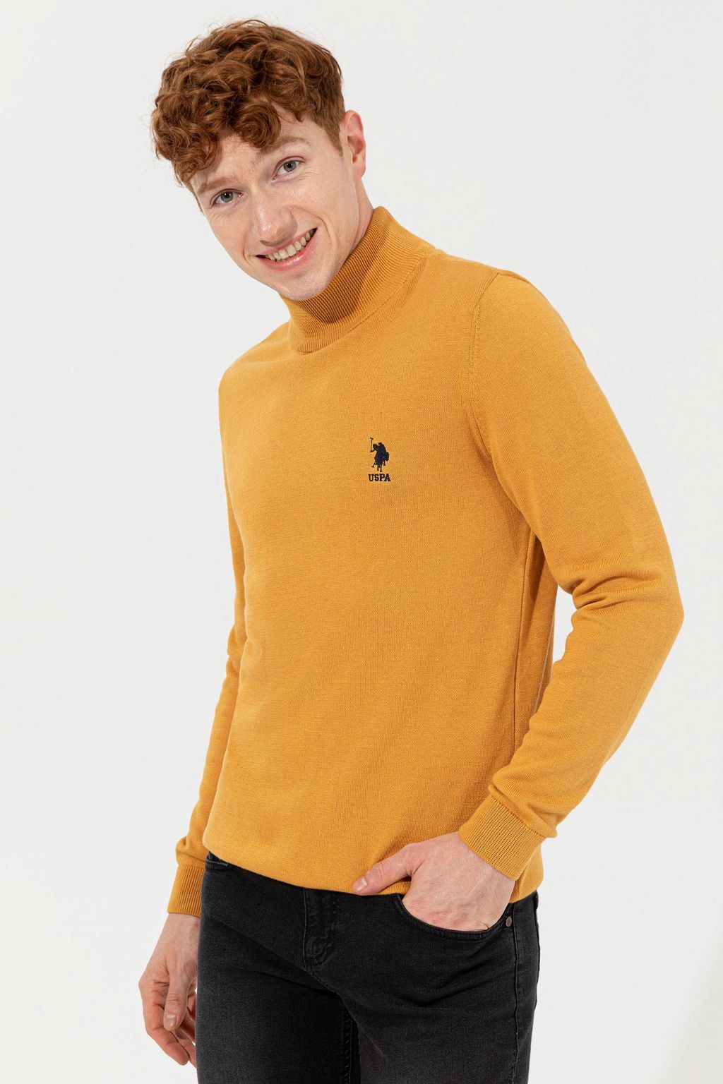 Мужской желтый трикотажный свитер Basic