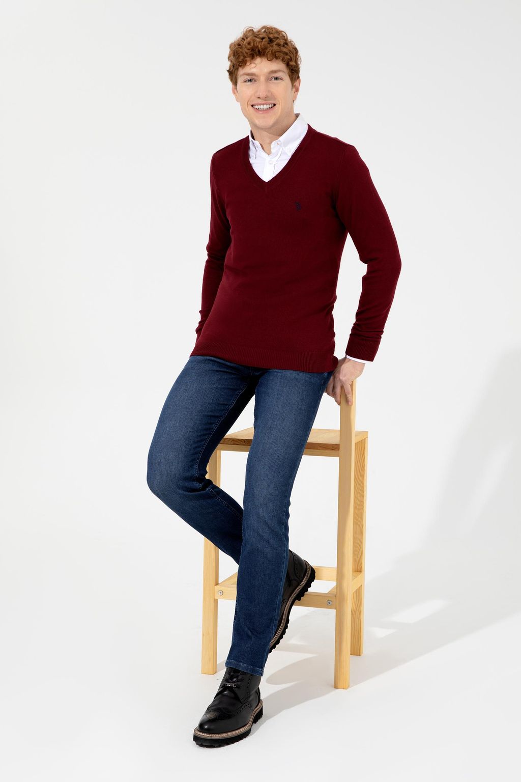 U. S. Polo Assn Мужской базовый трикотажный свитер бордового цвета с v-образным вырезом