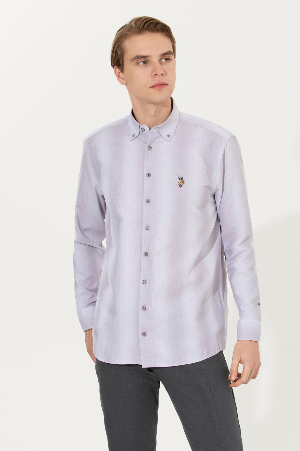 U. S. Polo Assn Мужская серая рубашка с длинным рукавом