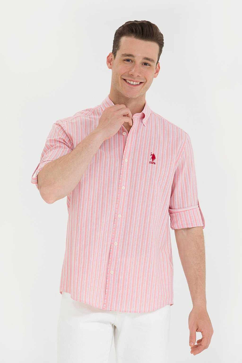U. S. Polo Assn Мужская рубашка лосося в белую полоску
