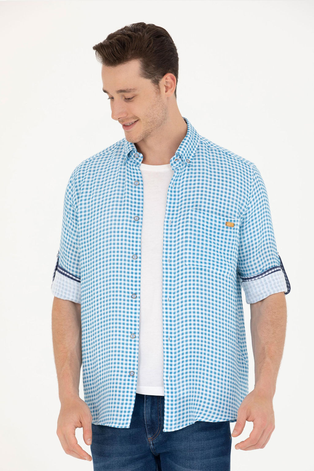 U. S. Polo Assn Мужская синяя рубашка в клетку