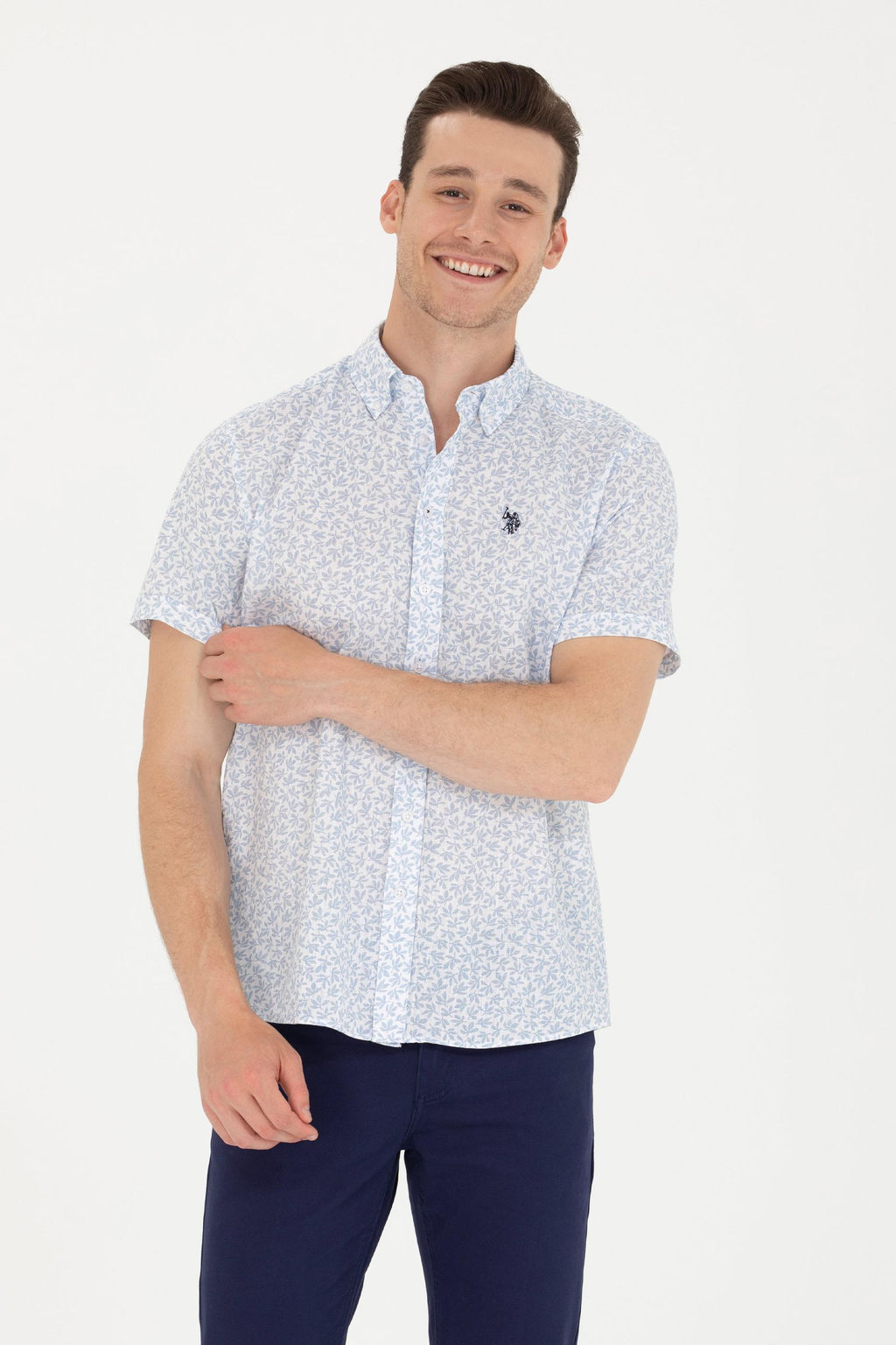 U. S. Polo Assn Мужская синяя рубашка с коротким рукавом