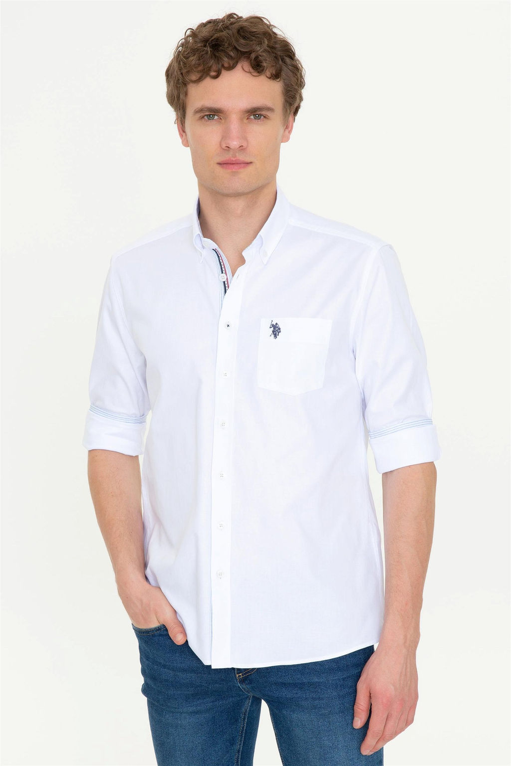 U. S. Polo Assn Мужская белая рубашка с длинным рукавом