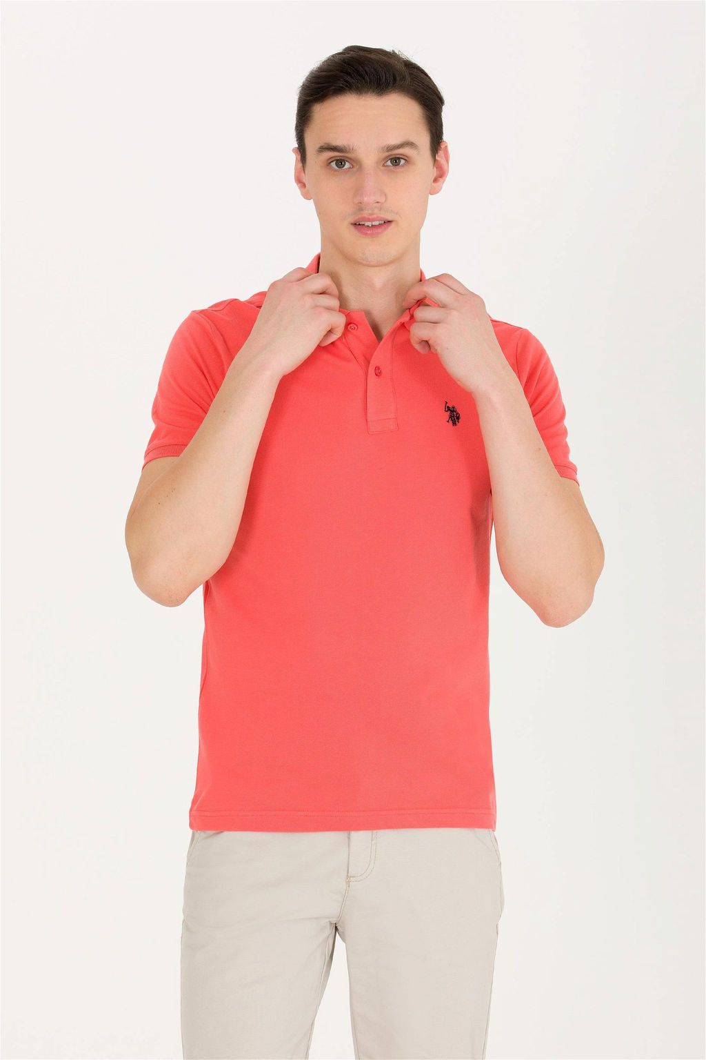 Мужская базовая футболка лососевого цвета с вырезом поло