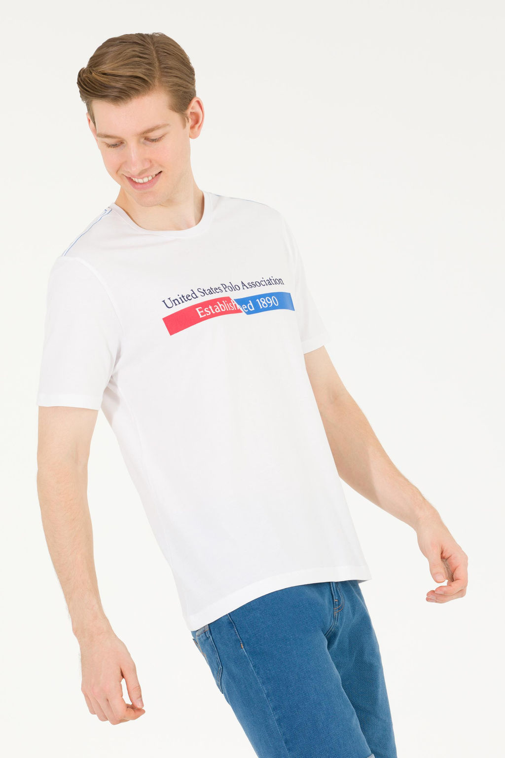 Мужская белая футболка с круглым вырезом