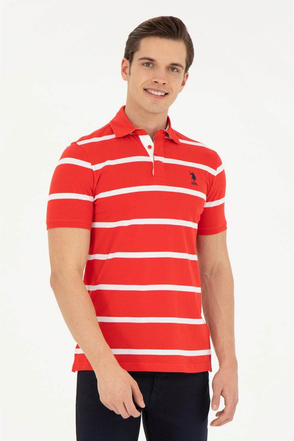 Мужская красная футболка с воротником-поло