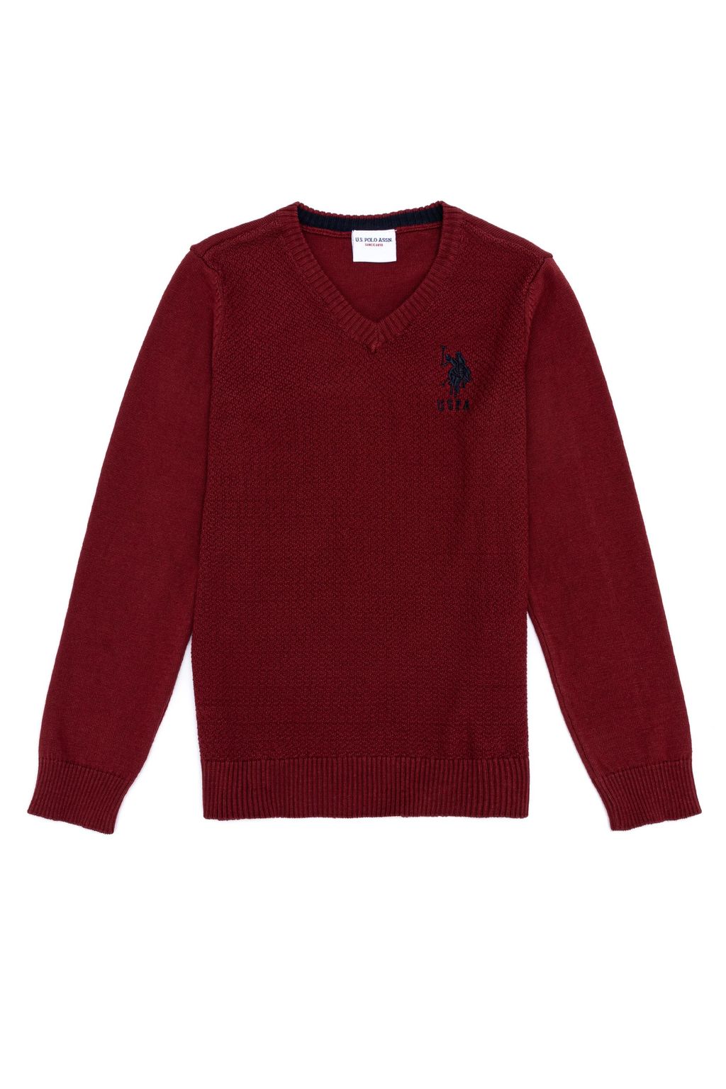 U. S. Polo Assn Трикотажный свитер с V-образным вырезом вишневого цвета для мальчика