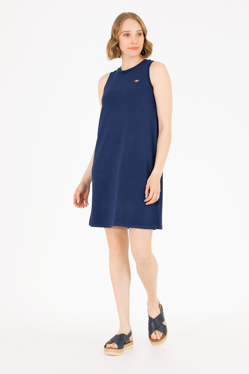 Женское темно-синее вязаное платье