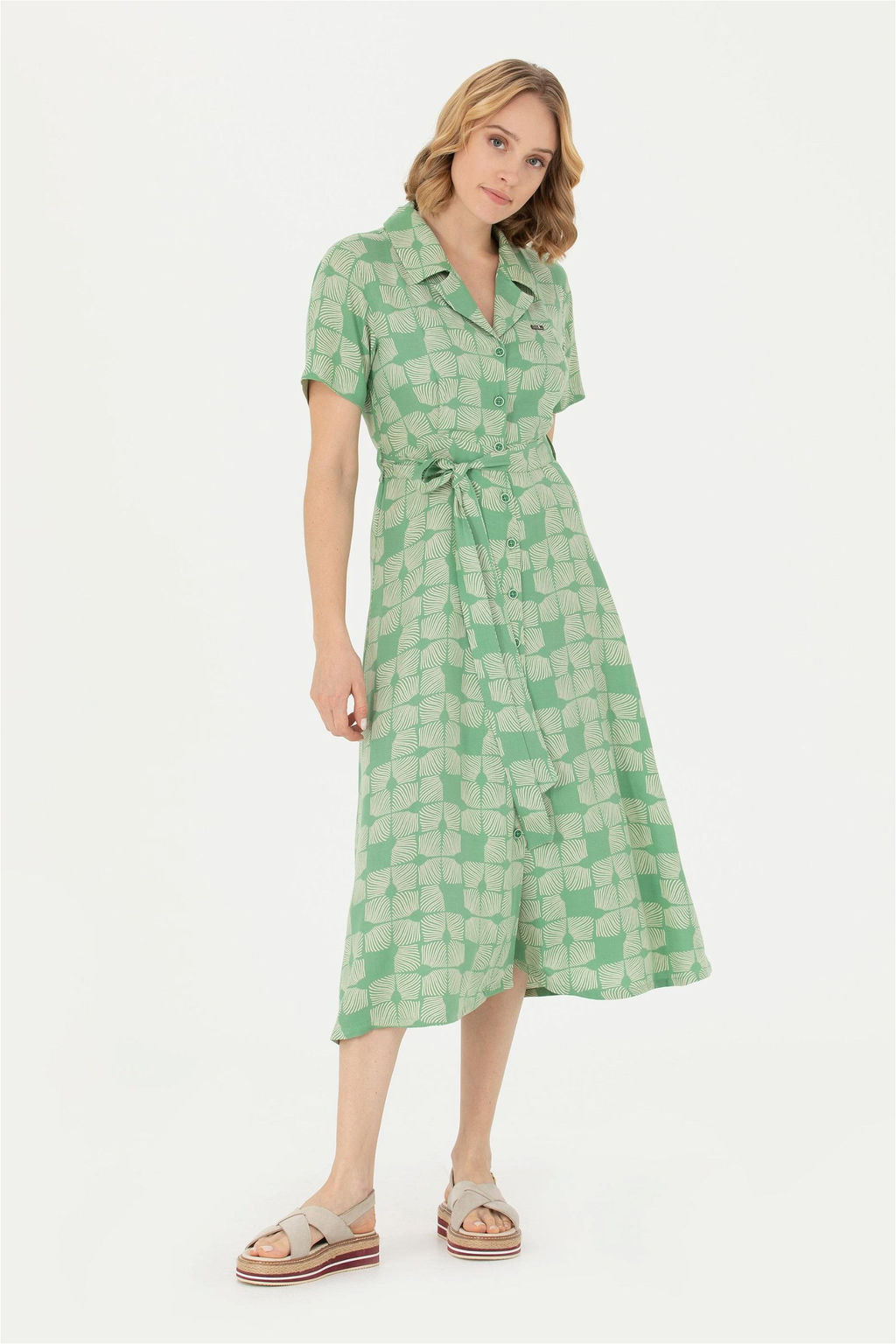 Женское зеленое тканое платье