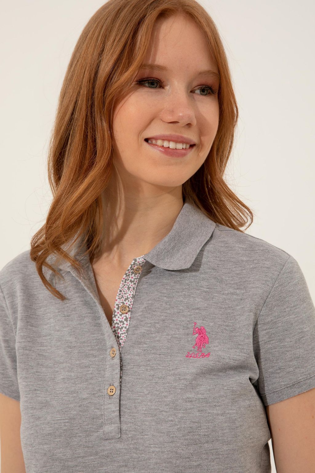 Женская серая меланжевая футболка с воротником поло Basic
