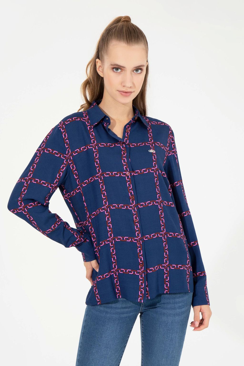 Женская рубашка вишневого цвета с длинным рукавом