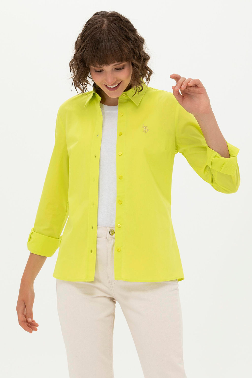 U. S. Polo Assn Женская неоново-желтая базовая рубашка с длинным рукавом