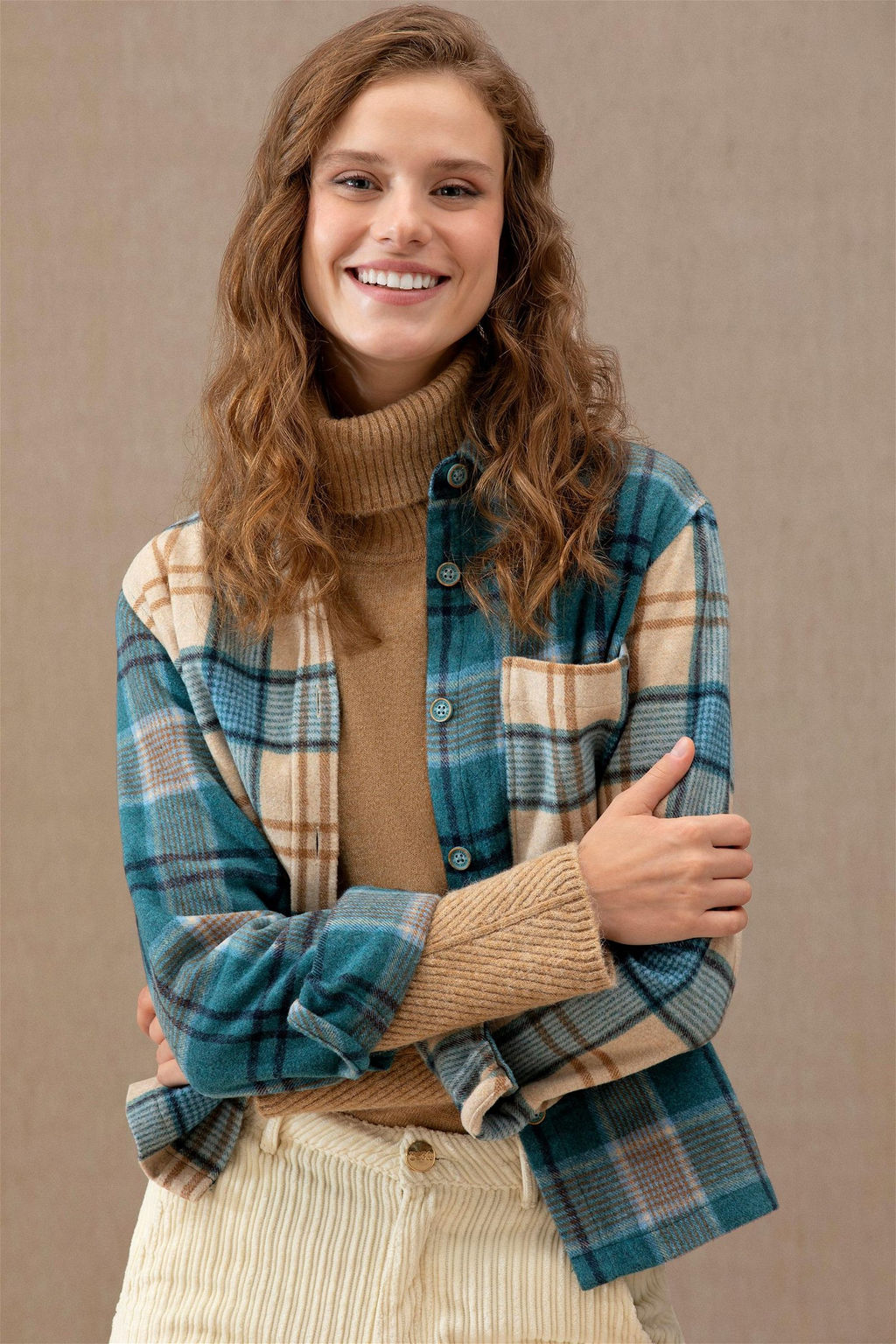 Женская мятная рубашка с длинным рукавом