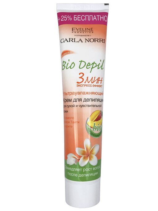 EVELINE Ультраувлажняющий крем для депиляции для сухой и чувствительной кожи 3мин. bio depil 125мл