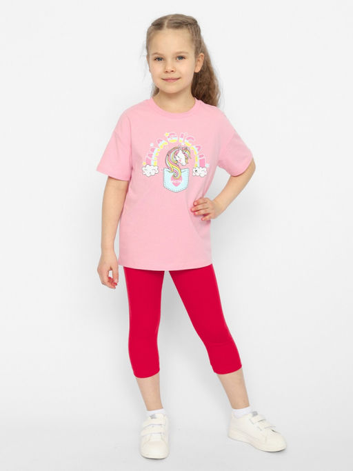 CRB wear/CSKG 90215-27 Комплект для девочки (футболка, бриджи),розовый/Ex.Cherubino