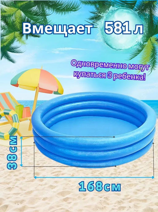 Бассейн с мягкими бортиками 168х41 см Синий кристалл, от 2-х лет INTEX