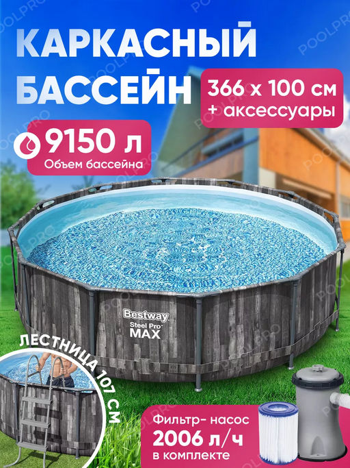 Бассейн на опорах 366х100 см (фильтр-насос 2,0 м3/ч, лестница) Bestway