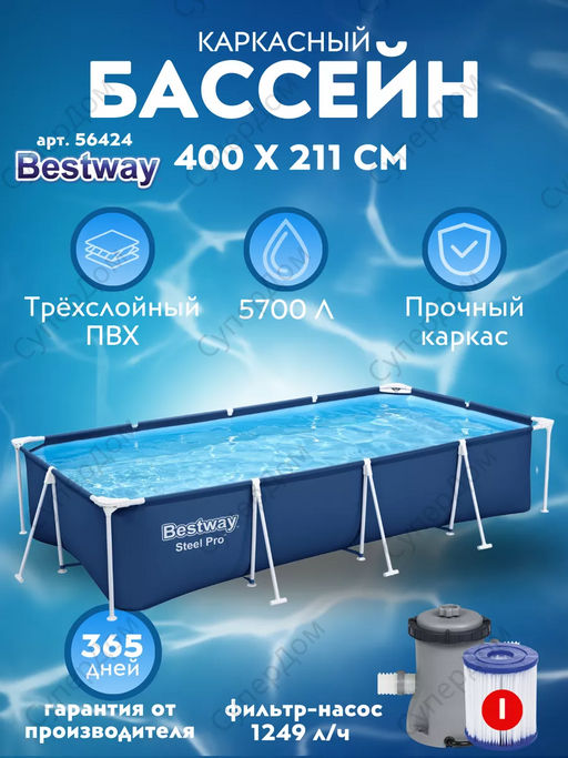 Бассейн на опорах 400х211х81 см с фильтр-насосом 1250 л/ч, Bestway