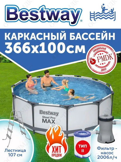-25% Бассейн на опорах 366х100 см (фильтр-насос 2,0 м3/ч, лестница) Bestway