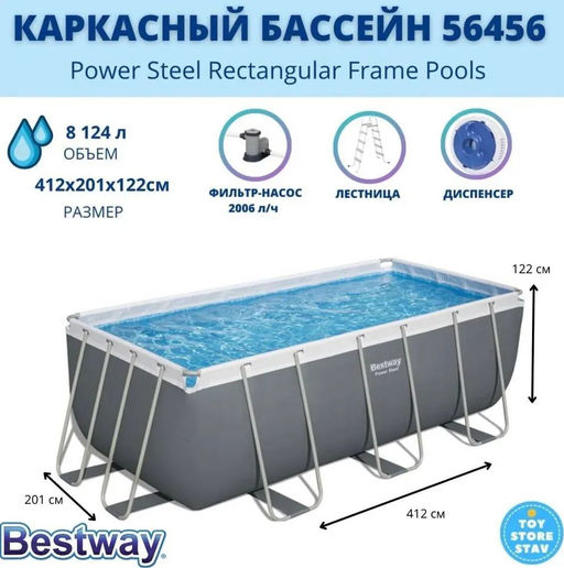 Бассейн на опорах 412х201х122 см (фильтр-насос, лестница) Bestway