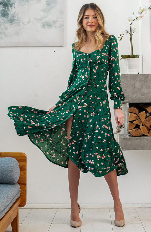 Эффектное платье изумрудный/цветы