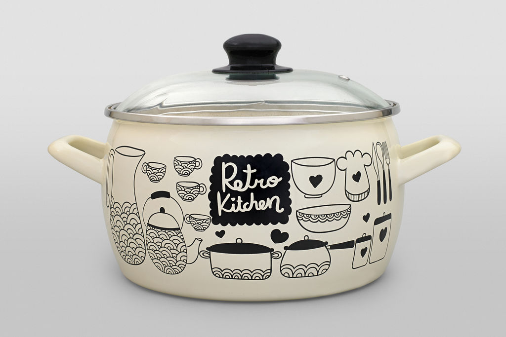 ГЛУБОКАЯ КАСТРЮЛЯ ЭКСКЛЮЗИВ СО СТЕКЛ. КРЫШКОЙ "РЕТРО" 5,7Л (22 СМ)