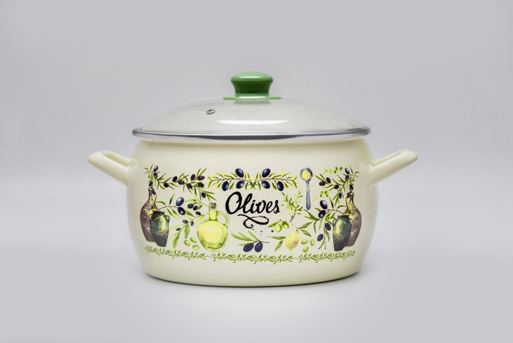 ГЛУБОКАЯ КАСТРЮЛЯ ЭКСКЛЮЗИВ СО СТЕКЛ. КРЫШКОЙ "ОЛИВА" 5,3Л (22 СМ)