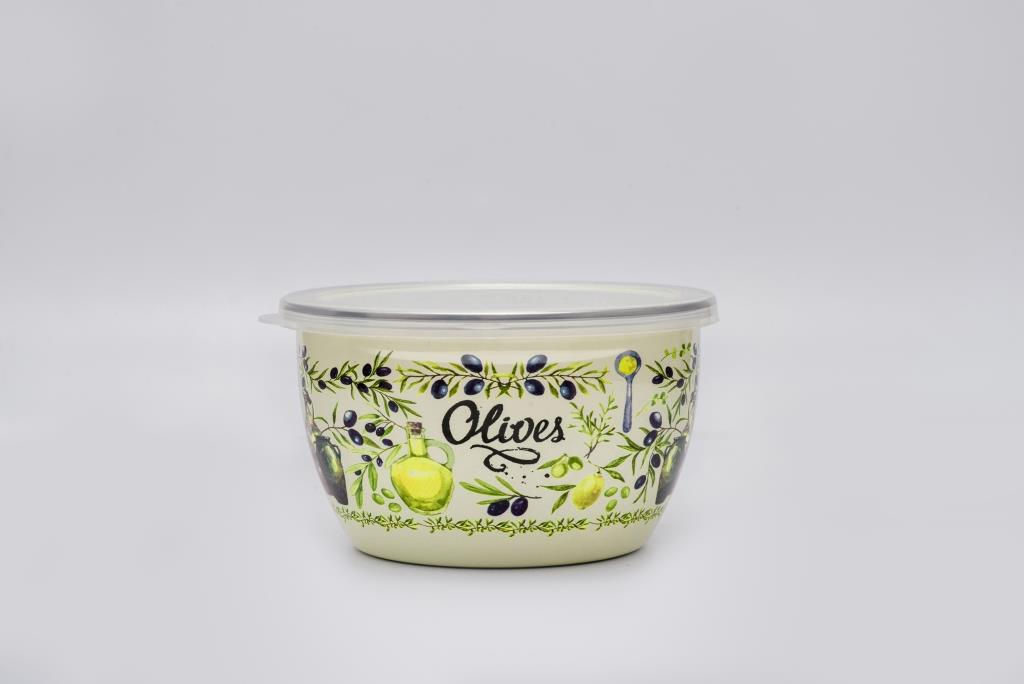 МИСКА ЭМАЛИРОВАННАЯ БЕЗ РУЧЕК С ПЛАСТИКОВОЙ КРЫШКОЙ" ОЛИВА" 1,75 л (16 см)