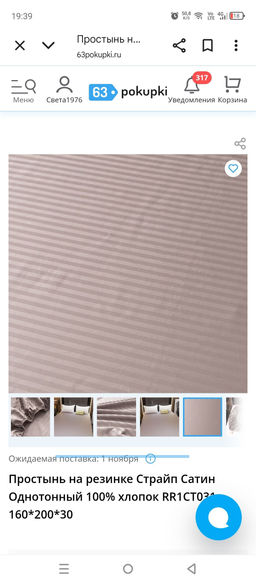 Простынь на резинке Страйп Сатин Однотонный 100% хлопок RR1CT031 160*200*30
