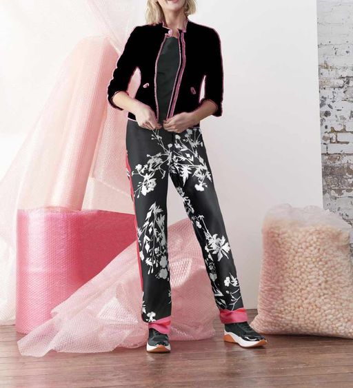Брюки, черно-бело-розовые