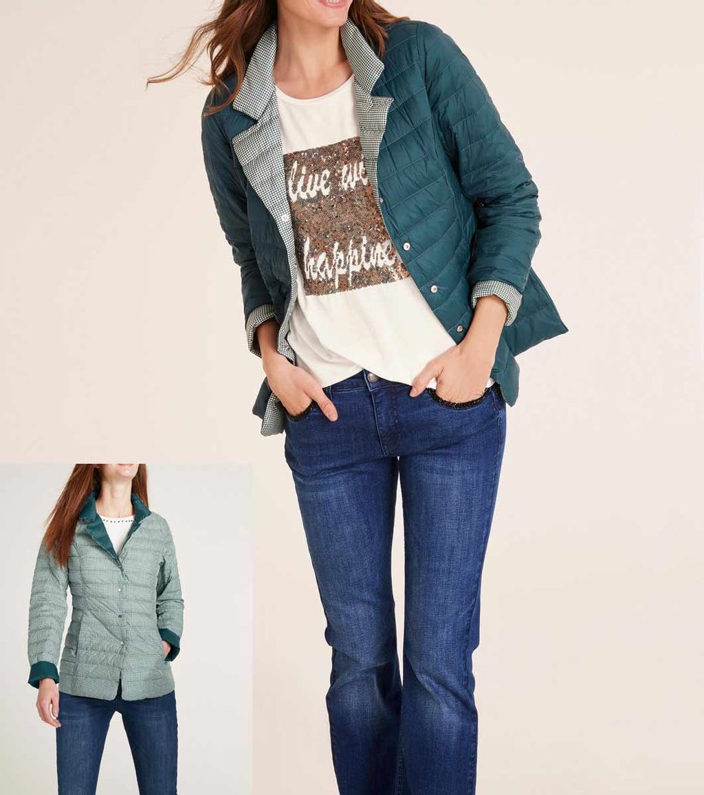 Пуховик двухсторонний, зелено-белый