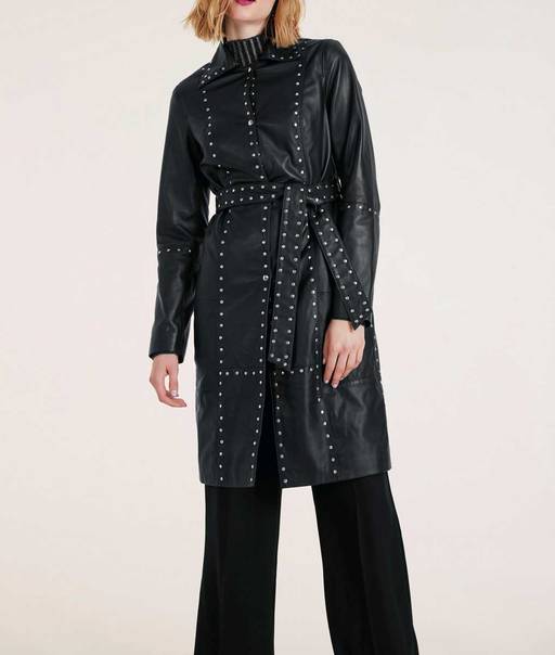 Кожаное пальто, черное