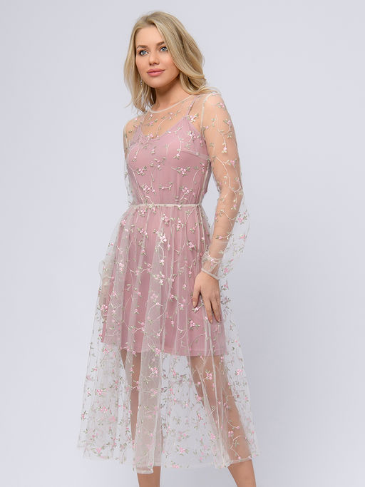 УЦЕНКА. Платье розового цвета длины миди с отделкой из фатина