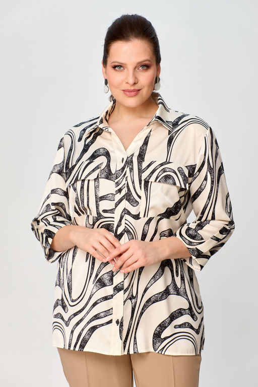 Блуза Элль стиль 2288а кремовый, черный принт