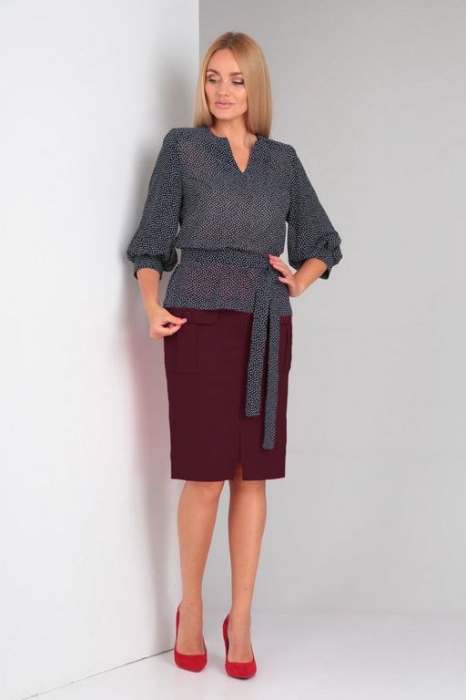 Костюм Gamma & Gracia 282 марсала темно-синий белый горох