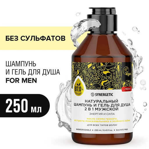 Шампунь и гель для душа 2 в 1 мужской «Энергия и сила», 250мл