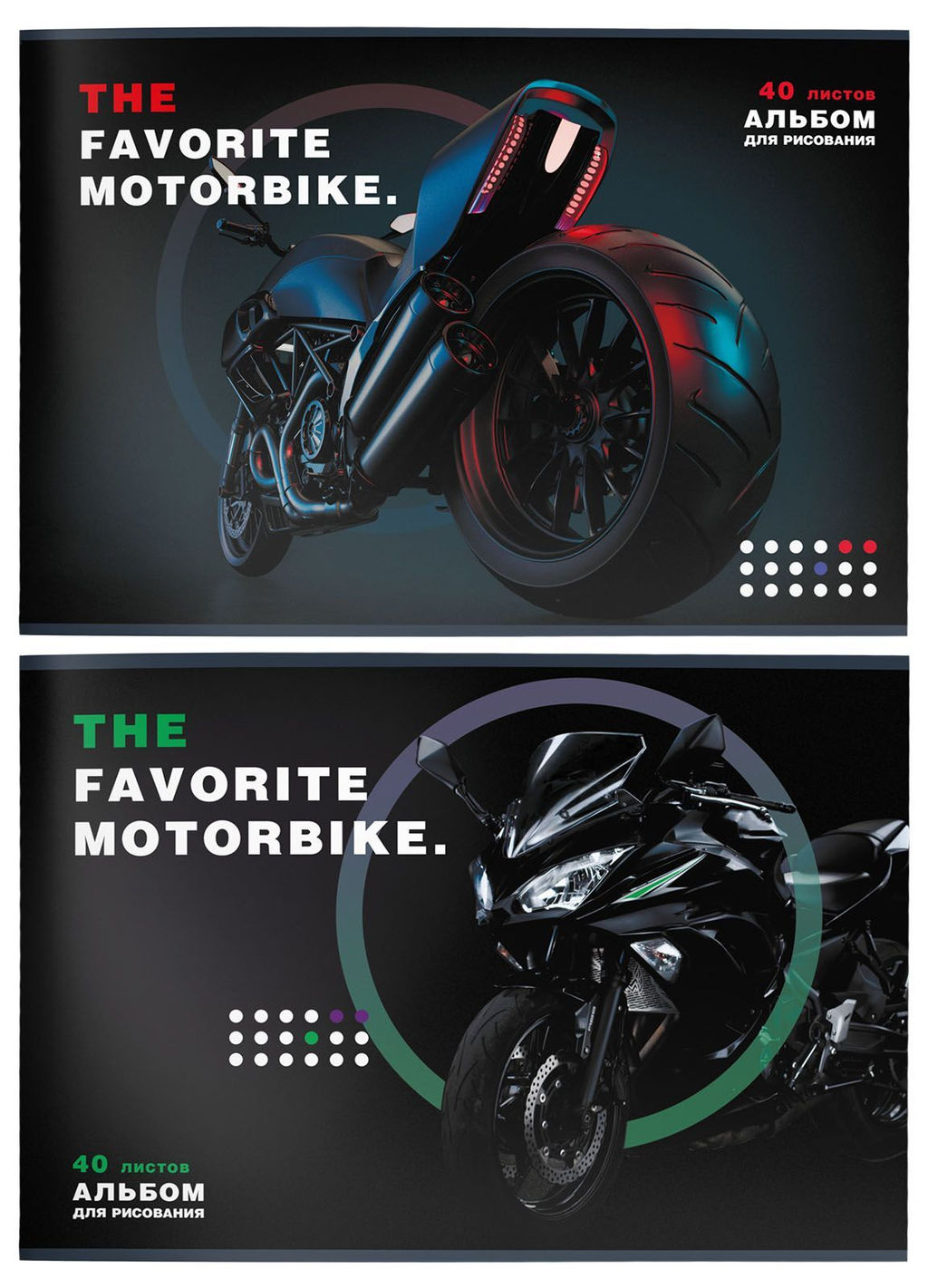Альбом для рисования Schoolformat 40 листов, А4, скрепка ЖЕЛЕЗНЫЙ ФАВОРИТ. МОТО мелованный...
