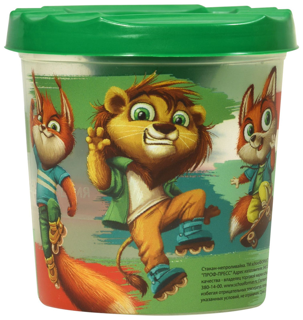 Стакан-непроливайка Schoolformat ВЕСЕЛЫЕ ЗВЕРЯТА 250 мл зеленый с принтом