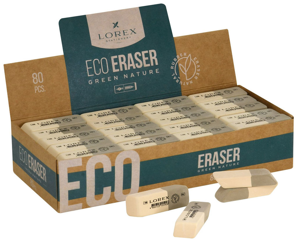 Цена за 10 шт.Ластик LOREX ECO GREEN NATURE каучук 42х14х8 мм, серый, S прямоугольный